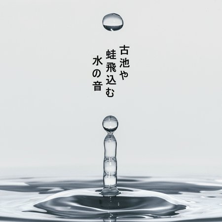 En términos visuales, se define una composición minimalista que lleve a imaginar un estanque tranquilo, quizás con algunos elementos que denoten su antigüedad, como piedras o musgo en sus bordes. En el centro, una pequeña rana saltando, capturando ese momento de movimiento en la quietud del estanque. Y para representar el sonido del agua, se hace uso de ondas suaves en la superficie del estanque, sugiriendo el impacto de la rana y el consiguiente murmullo del agua.